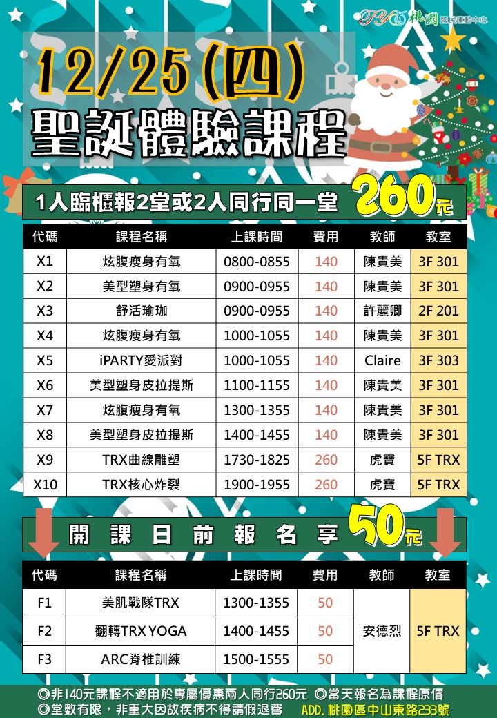 (TRX 380元、壺鈴350元、有氧/瑜珈 210元、飛輪250元)
