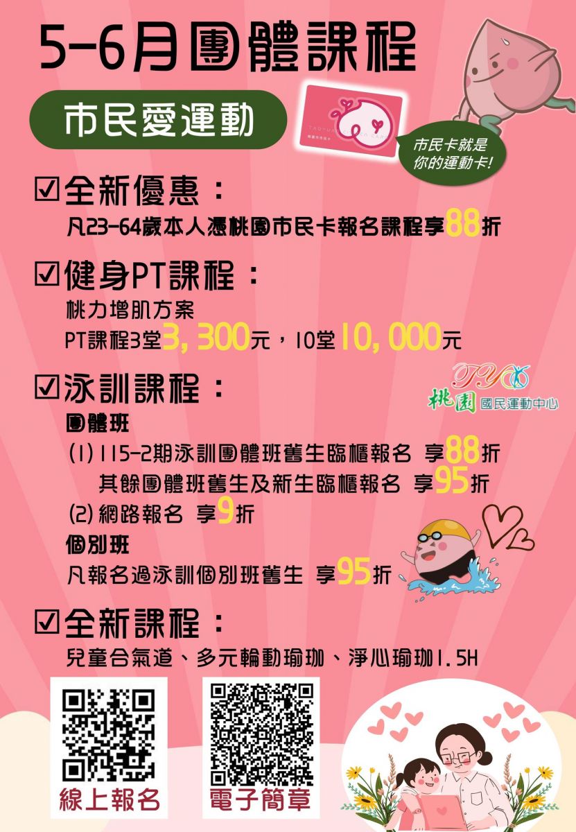 凡23-64歲本人憑桃園市民卡報名課程享88折優惠
