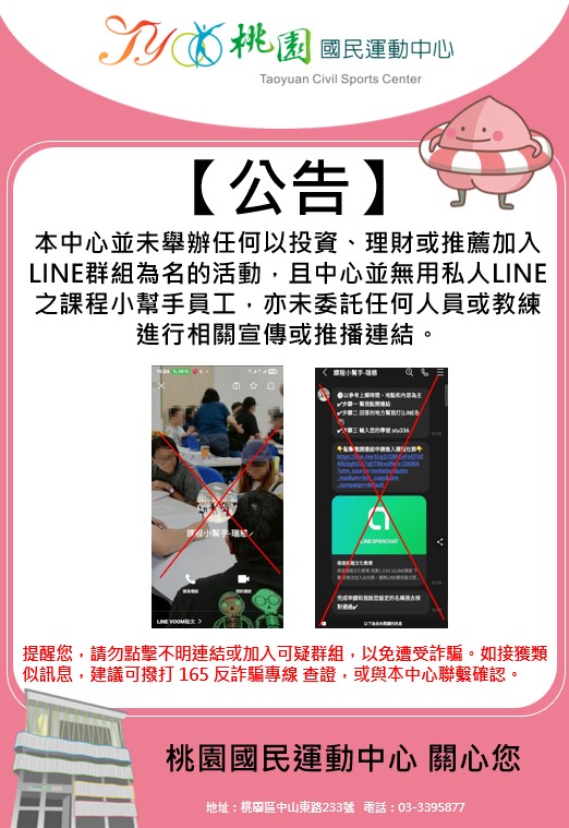 認明官方資訊→「桃園國民運動中心」粉絲專頁及網站,所有活動公告皆以官方訊息為準。