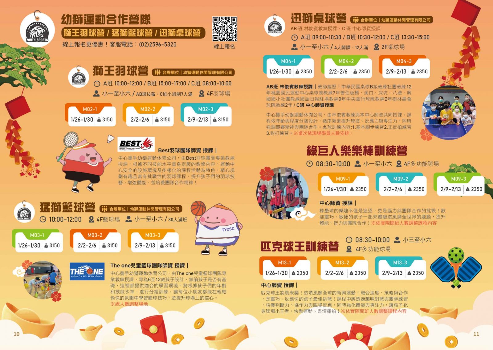 ※『獅王羽球營』/『猛獅籃球營』/『迅獅桌球營』網路報名連結 https://scr.cyc.org.tw/yu02.aspx